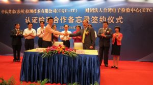 - 與大陸中認英泰(蘇州)檢測技術公司(CQC-IT)簽訂合作備忘錄。(圖片B)